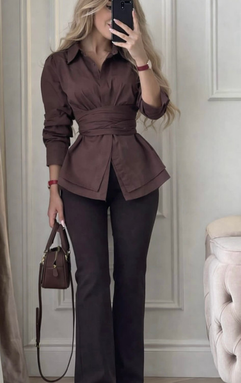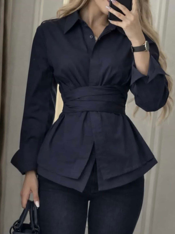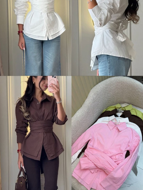 شومیز ترند کمر گن / مدل شومیز مانتویی کوتاه دخترانه /